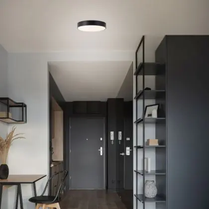 Beschrijving Brilliant Slimline Plafondlamp Metaal Kunststof Zwart Wit 22W 2400lm - 830 Warm Wit | 330mm