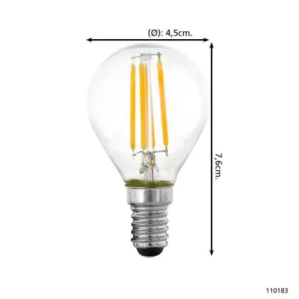 Beschrijving Eglo LED Kogel E14 Filament Helder 4.5W 470lm - 827 Zeer Warm Wit | Dimbaar - Vervangt 40W