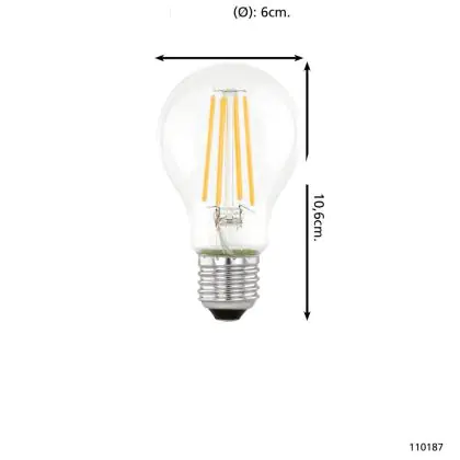 Beschrijving Eglo LED Peer E27 Filament Helder 7.3W 806lm - 830 Warm Wit | Vervangt 60W