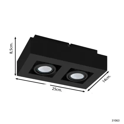 Beschrijving Eglo Plafond Spot Mendoza Staal Zwart 9.4W 690lm - 830 Warm Wit | Dimbaar - Geschikt voor GU10