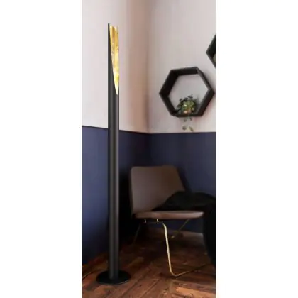 Beschrijving Eglo Vloerlamp Barbotto Staal Zwart, Goud 4.5W 345lm - 830 Warm Wit | Geschikt voor GU10