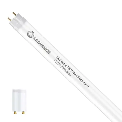 Beschrijving Ledvance LED Buis T8 Value (EM/Mains) Standard Output 15W 1620lm - 830 Warm Wit | 120cm - Vervangt 36W