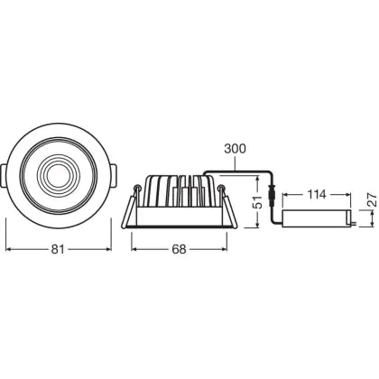 Beschrijving Ledvance LED Downlight Inbouw Zilver 8W 670lm 36D - 840 Koel Wit | Zaagmaat 68mm - Dimbaar