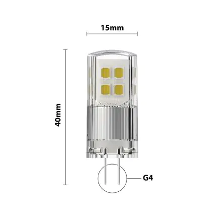 Door het kopen van dit product haal je in vergelijking met een G4 halogeenlampje duurzame verlichting binnen. Daarnaast is LED veel beter voor het milieu, omdat er geen giftige stoffen in zitten. Wel raden we je aan om de afmetingen van je huidige G4 lamp te vergelijken met die van deze G4 LED lamp. De diameter van dit product is: mm en de hoogte is: 40mm. Op deze manier weet je zeker of dit steeklampje wel/niet in het armatuur past. Wil je een overzicht van al onze G4 LED lampen zien? Klik dan hier.