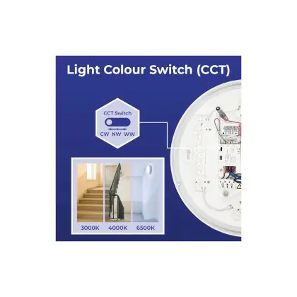 Denk ook goed na over de plaats waar je jouw nieuwe LED plafondverlichting wil ophangen, in combinatie met de juiste kleurtemperatuur. Zo geven 2700 Kelvin (extra warm wit) en 3000 Kelvin (warm wit) wat zachter en aangenamer licht. Deze tint is daarom goed geschikt voor gezellige buitenplaatsen of algemene ruimtes zoals een gang, lift, hal of overloop. 4000 Kelvin (koel wit) oogt qua tint wat feller en frisser en is daarom niet echt geschikt als sfeerverlichting, maar vooral als functionele verlichting. Denk daarbij aan vergaderzalen, gymzalen, werkkamers etc. Deze LED plafondlamp heeft als kleurtemperatuur: . Wist je dat het online kopen van LED plafondlampen bij Lampdirect als zakelijke klant extra voordelen met zich meebrengt? Lees er hier alles over.
