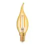 Het heldere glas van de LED lamp met een gouden gloed zorgt voor een stijlvol design waarbij je de LED filament draden binnenin kunt zien. Dit maakt het een geschikte bijdrage aan je sfeerverlichting Verder is de lamp kaarsvormig met een gebogen punt en berust met een E14 schroeffitting, ook wel dunne fitting genoemd, die makkelijk geschroefd kan worden in bestaande armaturen.
