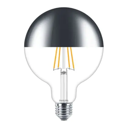 Beschrijving Philips Classic LED Globe E27 Filament Spiegel Helder 120mm 7.2W 650lm - 827 Zeer Warm Wit | Dimbaar - Vervangt 60W