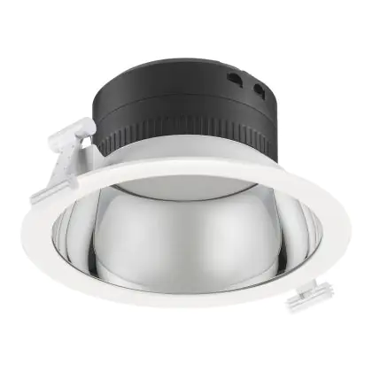 Het installeren van deze Philips downlight is vrij eenvoudig en kan rechtstreeks op het stroomnetwerk (220-240V). Dat komt onder andere omdat de driver al is ingebouwd en de 6-polige doorvoerconnector het aansluiten in elk systeemplafond gemakkelijk maakt. Let voor het installeren wel of de inbouwdiepte (200mm) en met name de zaagmaat (150mm) overeenkomen met die van dit product. Twee sterke rvs-klemmen zorgen ervoor dat dit armatuur stevig op zijn plek blijft zitten. Deze Philips CoreLine serie bevat tevens InterAct-ready armaturen met ingebouwde draadloze communicatie voor gebruik met InterAct-gateways, -
