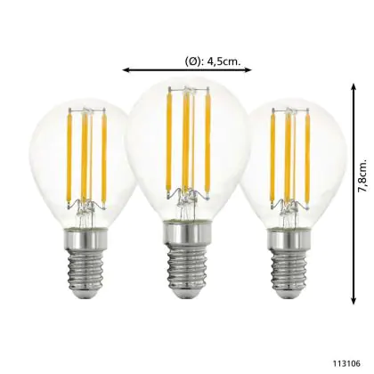 Beschrijving Voordeelpak 3x Eglo LED Kogel E14 Filament Helder 21W 806lm - 827 Zeer Warm Wit | Vervangt 60W